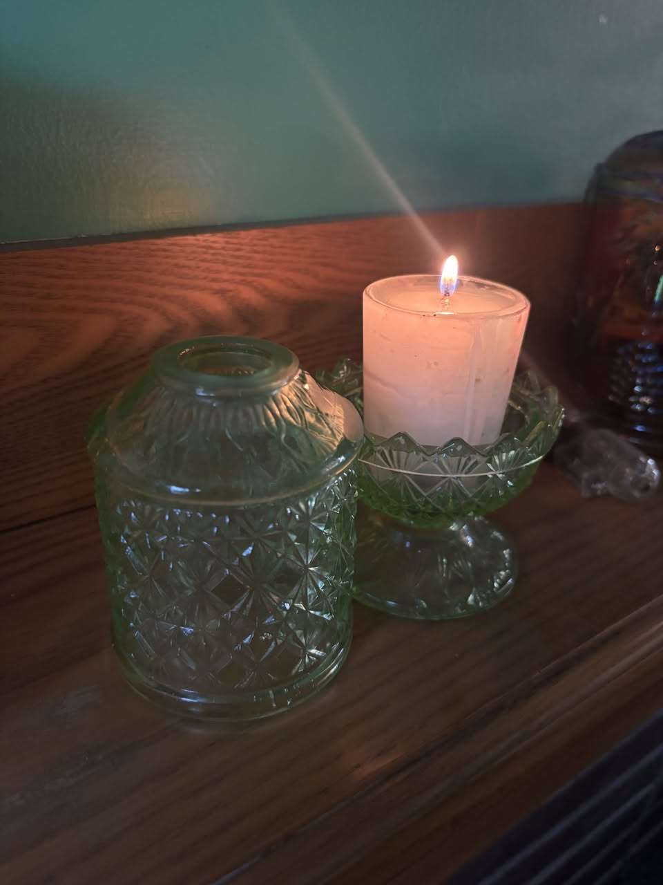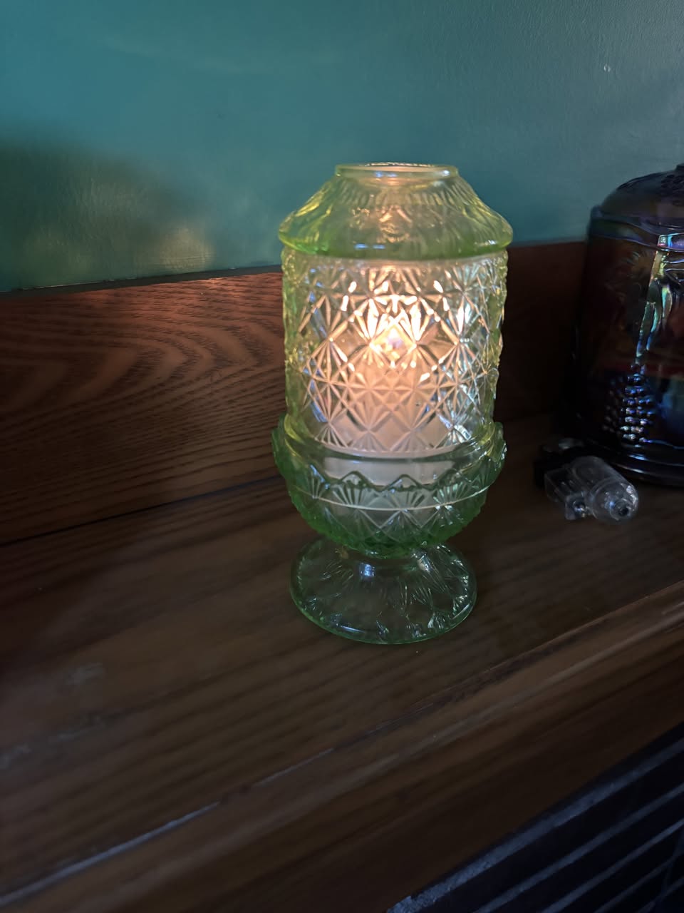 which went out of business, and Fred Wilkerson at Wilkerson Glass bought the moulds. He makes new things out of recycled glass -- from broken stuff (word of the day: "cullet".) We're guessing that this radioactive uranium glass was made in about 1930. Wilkerson cast this in 2022.